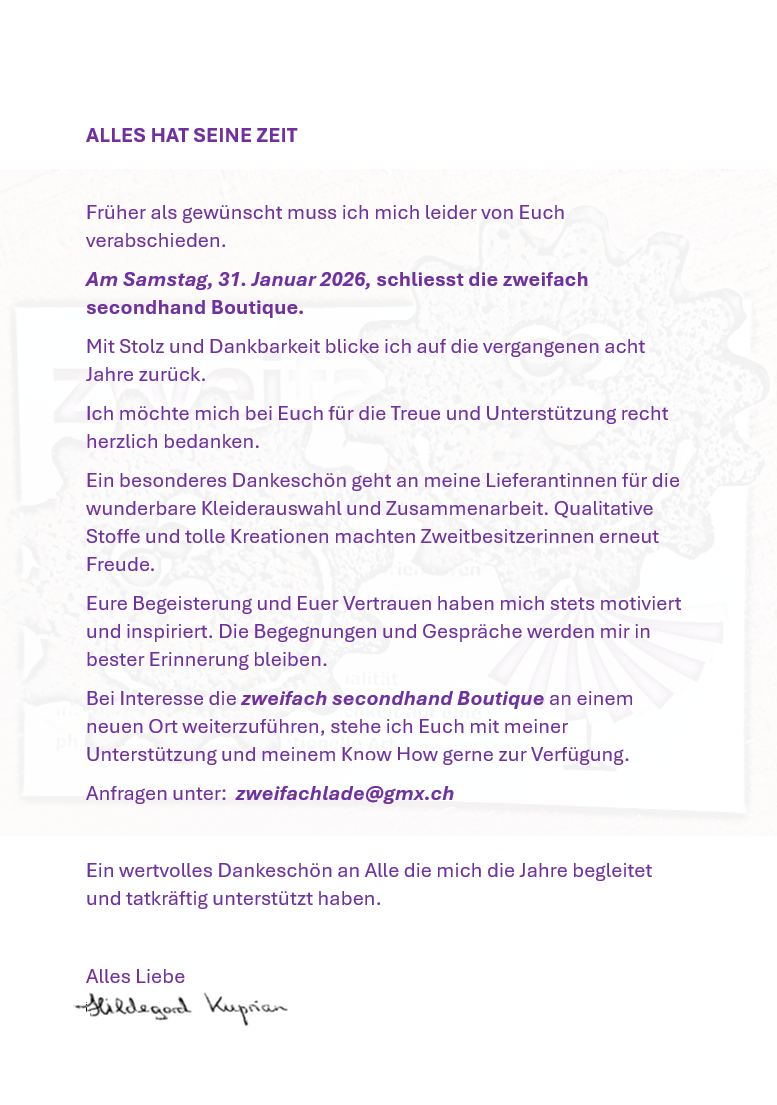 Besten Dank, Ihre zweifach secondhand Boutique.